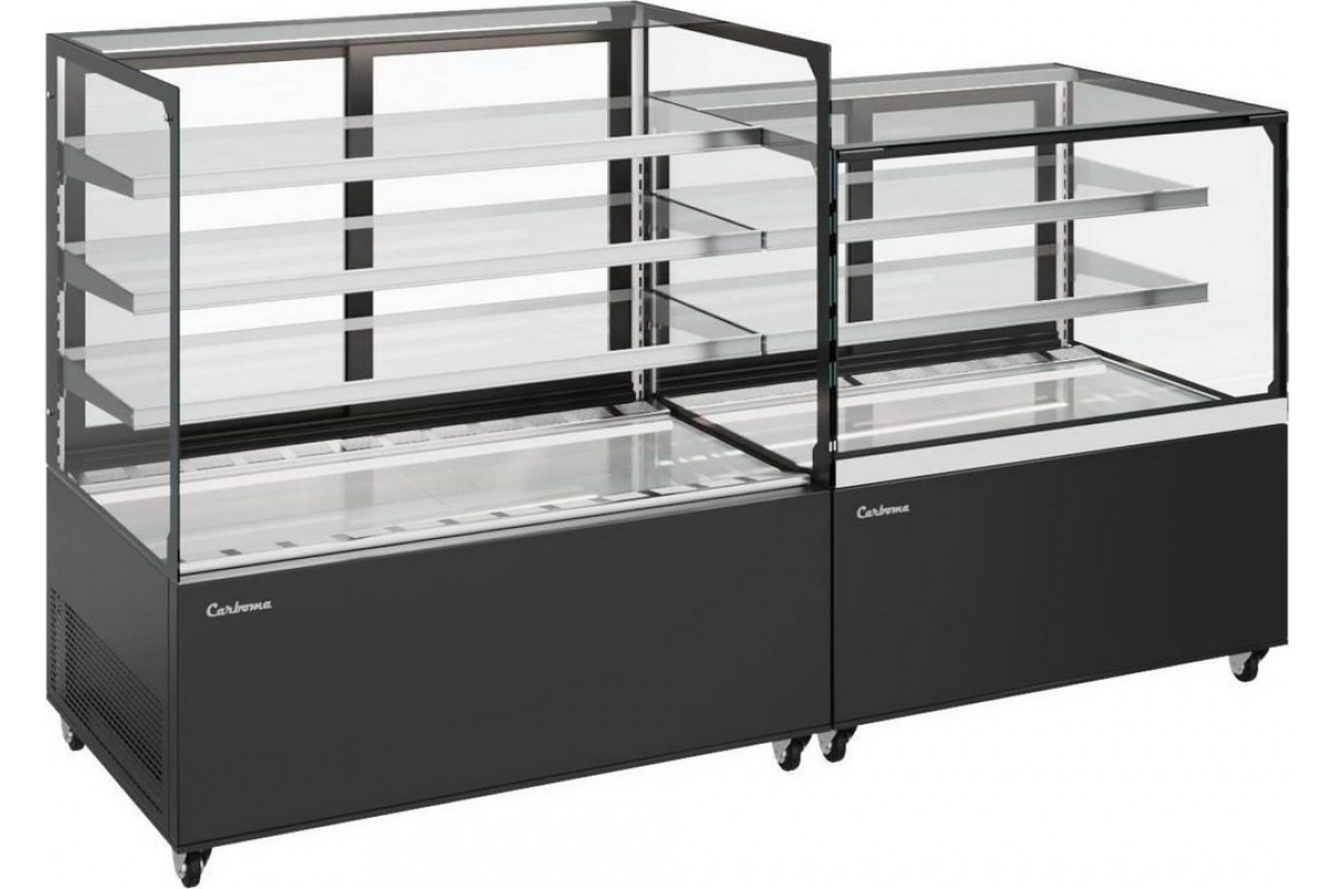 Витрина нейтральная напольная Carboma KC71-130 N 1,2-1 (9005) витрины COSMO идеально подходят для любой конфигурации помещений кондитерской, пекарни, кафе. Дают возможность легко менять и расширять концепцию, варьируя пространством и объёмом экспозиции продуктов. Ровные грани стеклопакетов и отсутствие соединительных планок во внешнем контуре остекления придают витринам легкость и эффект бесконечности.