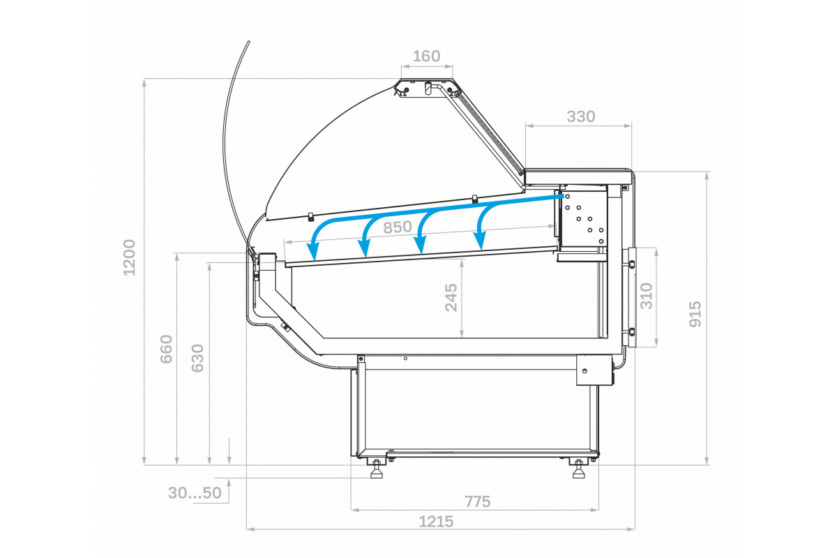 - 2х ступенчатые поддоны для выкладки. Общая высота поддона -120 мм, общая глубина-480мм;