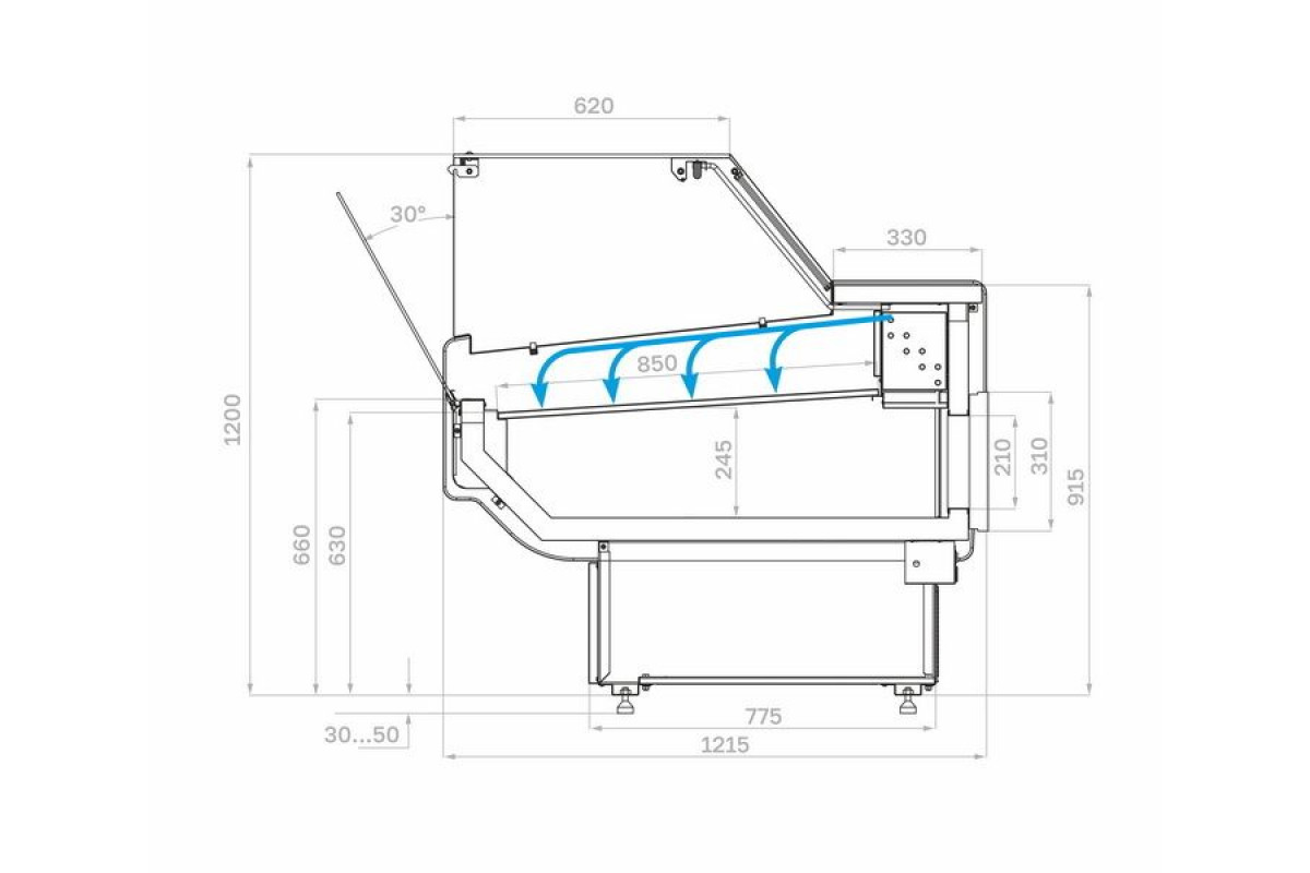 - Экспозиционная поверхность, столешница из шлифованной нержавеющей стали. Базовые поддоны из нержавеющей стали;