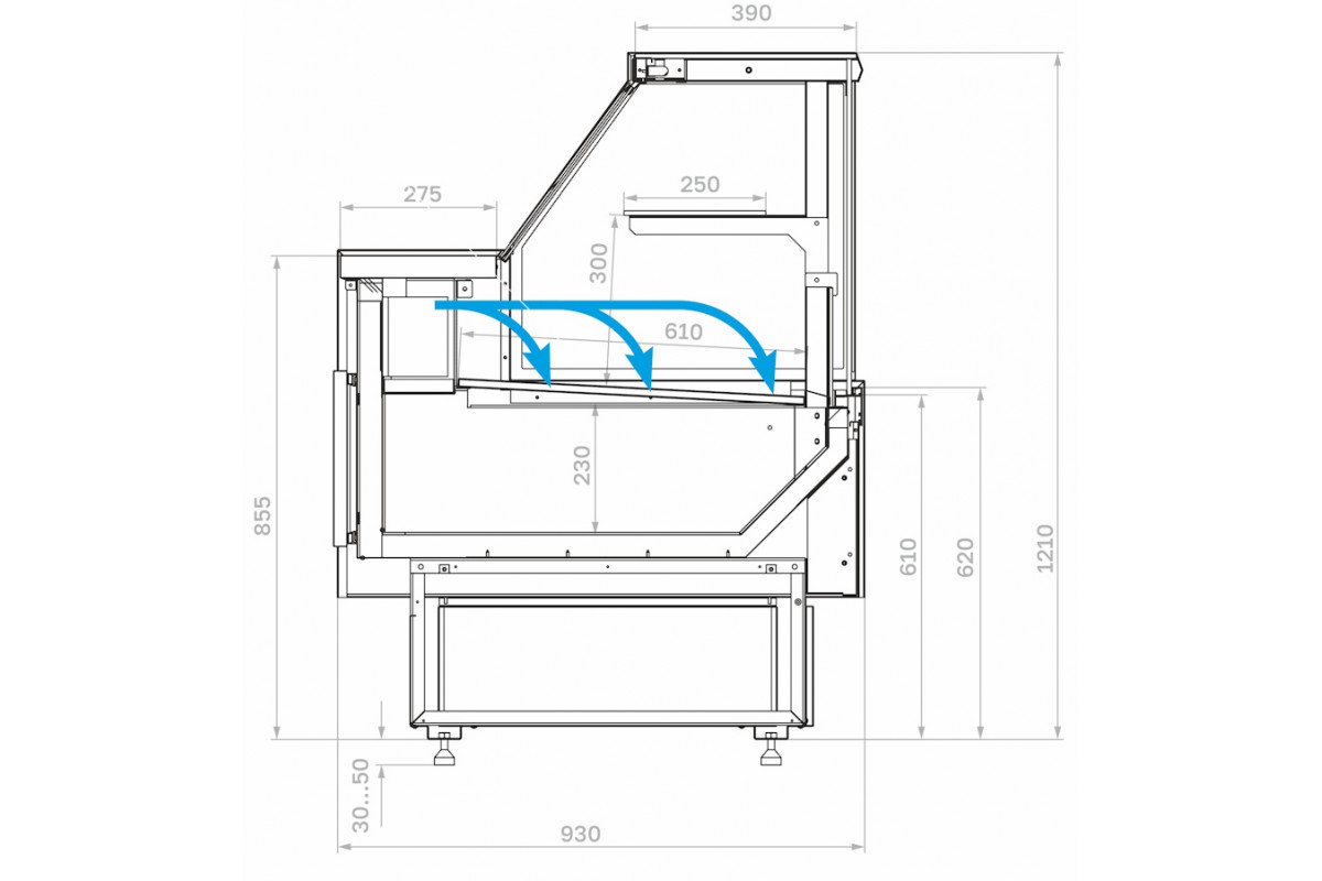 Модель без боковин предназначена для установки нескольких витрин в линию и не может использоваться как отдельностоящая. При заказе нескольких моделей для установки в линию достаточно приобрести две боковины: для первой и последней витрины.
