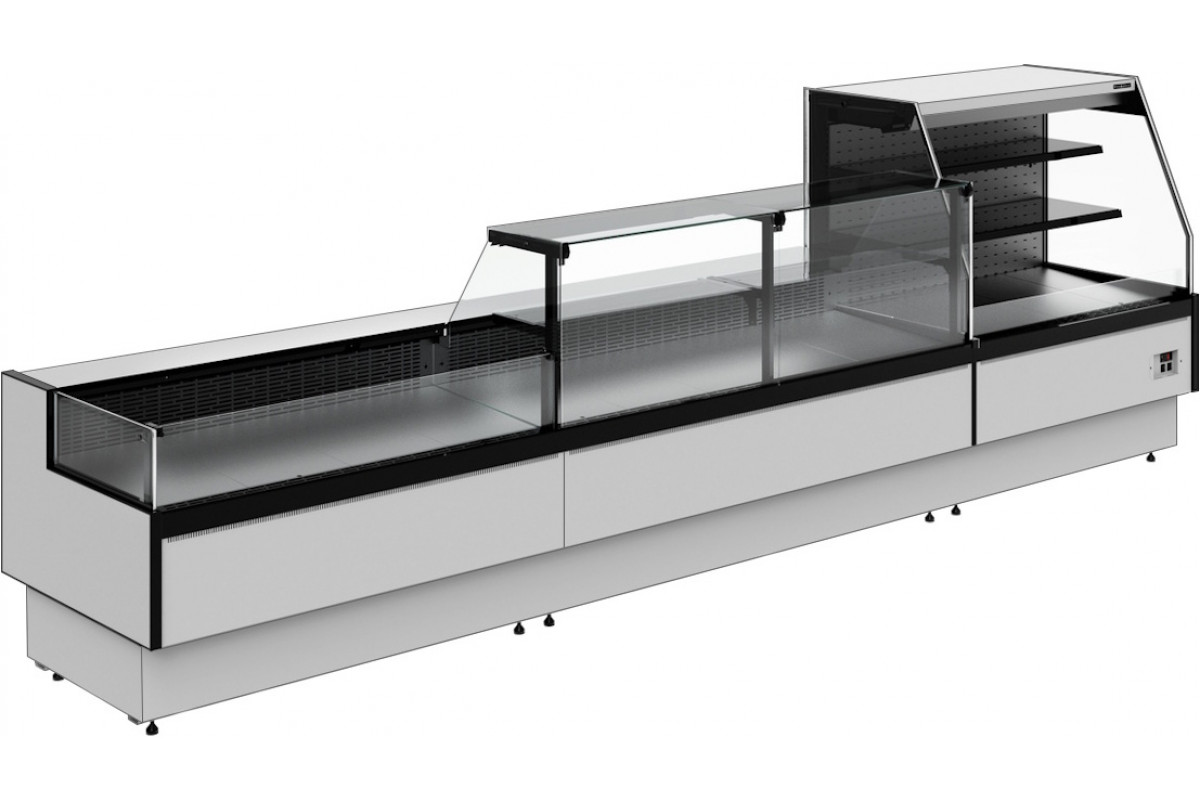 Модель без боковин предназначена для установки нескольких витрин в линию и не может использоваться как отдельностоящая. При заказе нескольких моделей для установки в линию достаточно приобрести две боковины: для первой и последней витрины.