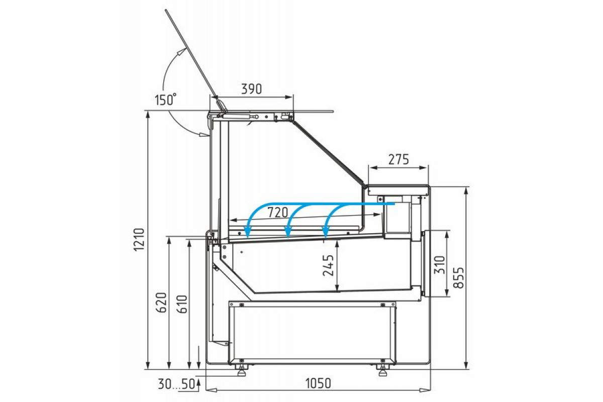 Отдельностоящие витрины приобретаются только вместе с боковинами. При заказе нескольких витрин с одинаковым температурным режимом для установки в линию достаточно заказать 2 боковины на всю линию.