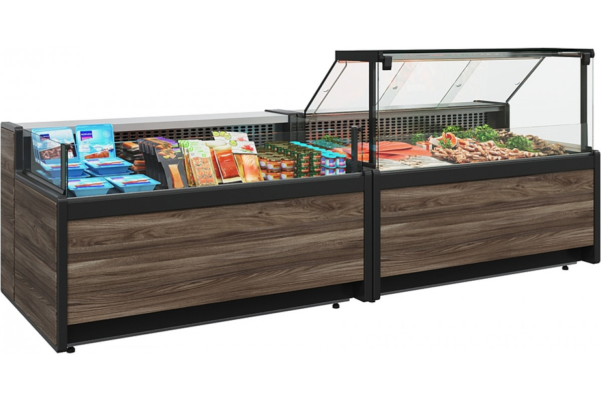 Отдельностоящие витрины приобретаются только вместе с боковинами. При заказе нескольких витрин с одинаковым температурным режимом для установки в линию достаточно заказать 2 боковины на всю линию.